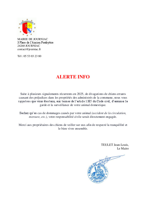 Suite aux informations transmises par RDE24 (Régie des Eaux de la Dordogne – Agence du Bugue), plusieurs fuites dues au gel ont été constatées sur la commune.