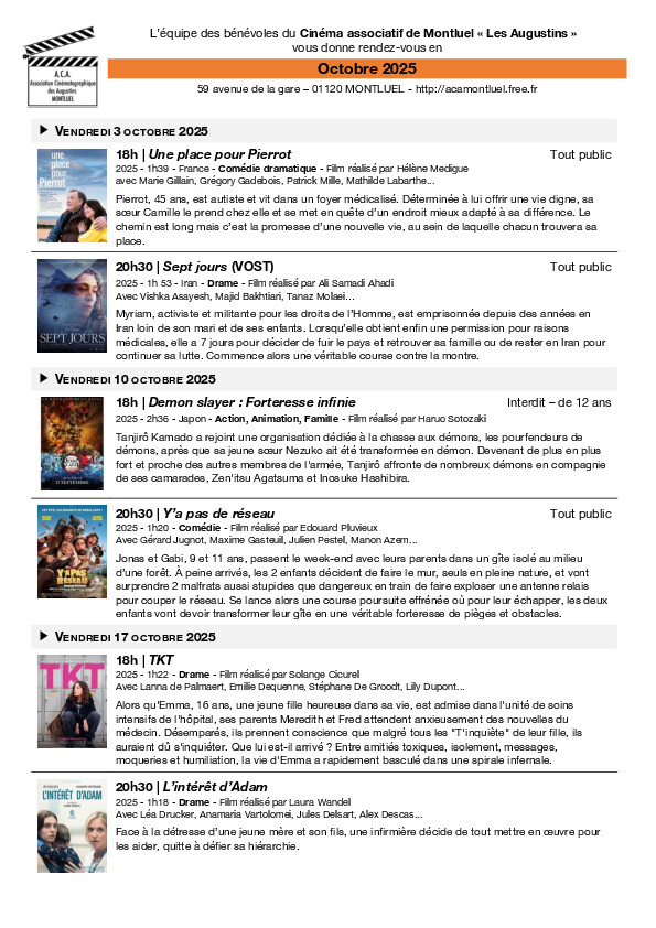 👉 Une réunion d'information aura lieu : Mardi 14 octobre 2025 à 17h30