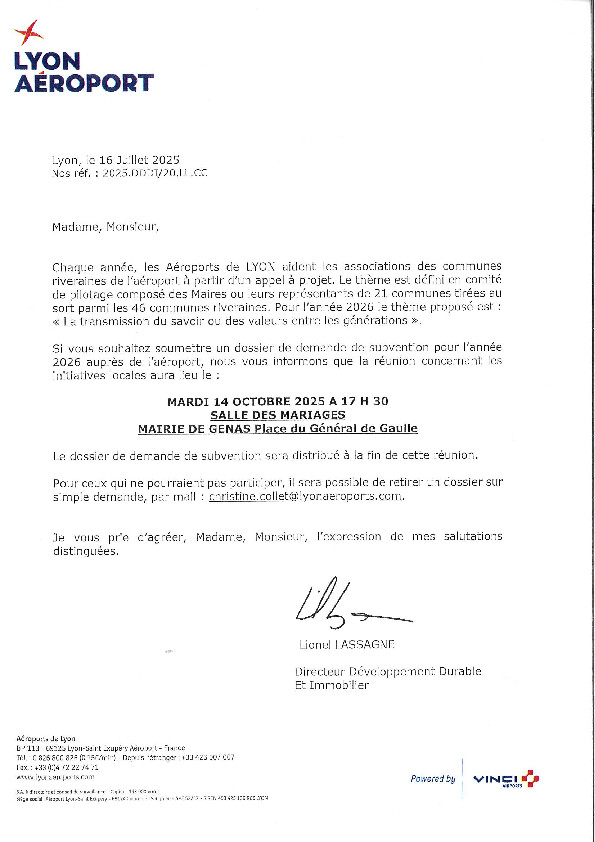 En cas d'absence, il pourra être demandé par mail à : christine.collet@lyonaeroports.com