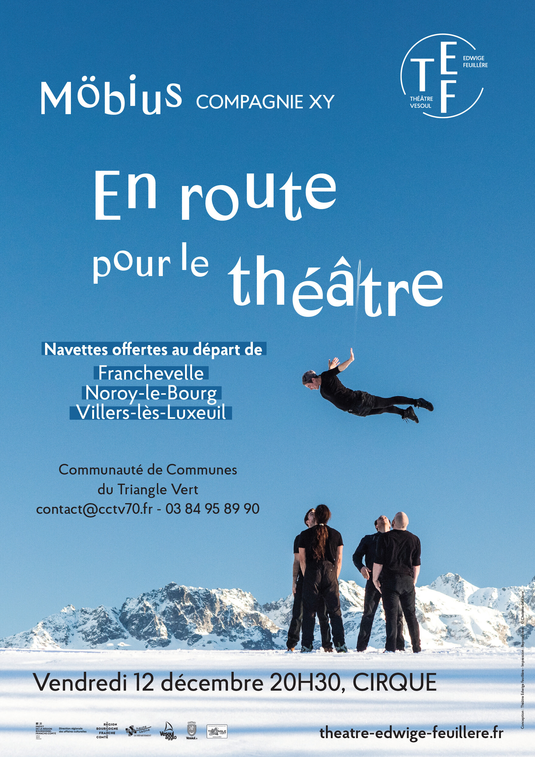 La CCTV propose des navettes gratuites au départ de Franchevelle, Noroy-le-Bourg et Villers-lès-Luxeuil pour le spectacle Möbius du 12/12/2025 au théâtre Edwige Feuillère à Vesoul pour les habitants du territoire.