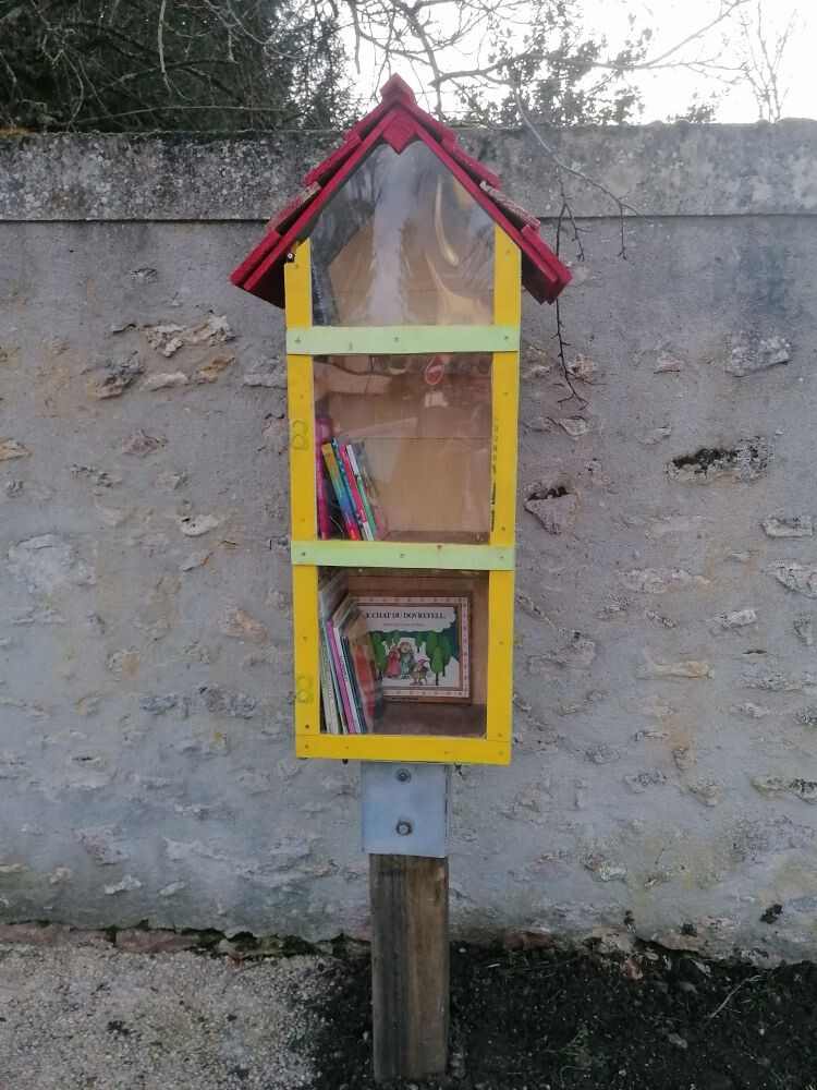 Après avoir été plusieurs fois abîmée, la boîte à livres a été repositionnée devant l'école maternelle.