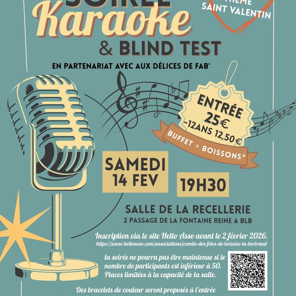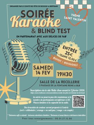 le 14 février 2026 de 19h30 à 02h00 salle de la Recellerie.