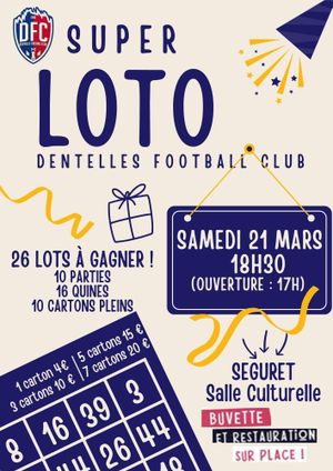 Le comité des fêtes organise son loto le dimanche 8 mars à 17h00 à la salle des fêtes !! 🎉