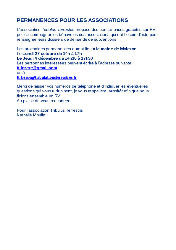 Vous pouvez appeler le secrétariat pour signaler vos besoins au 04 66 44 70 50.