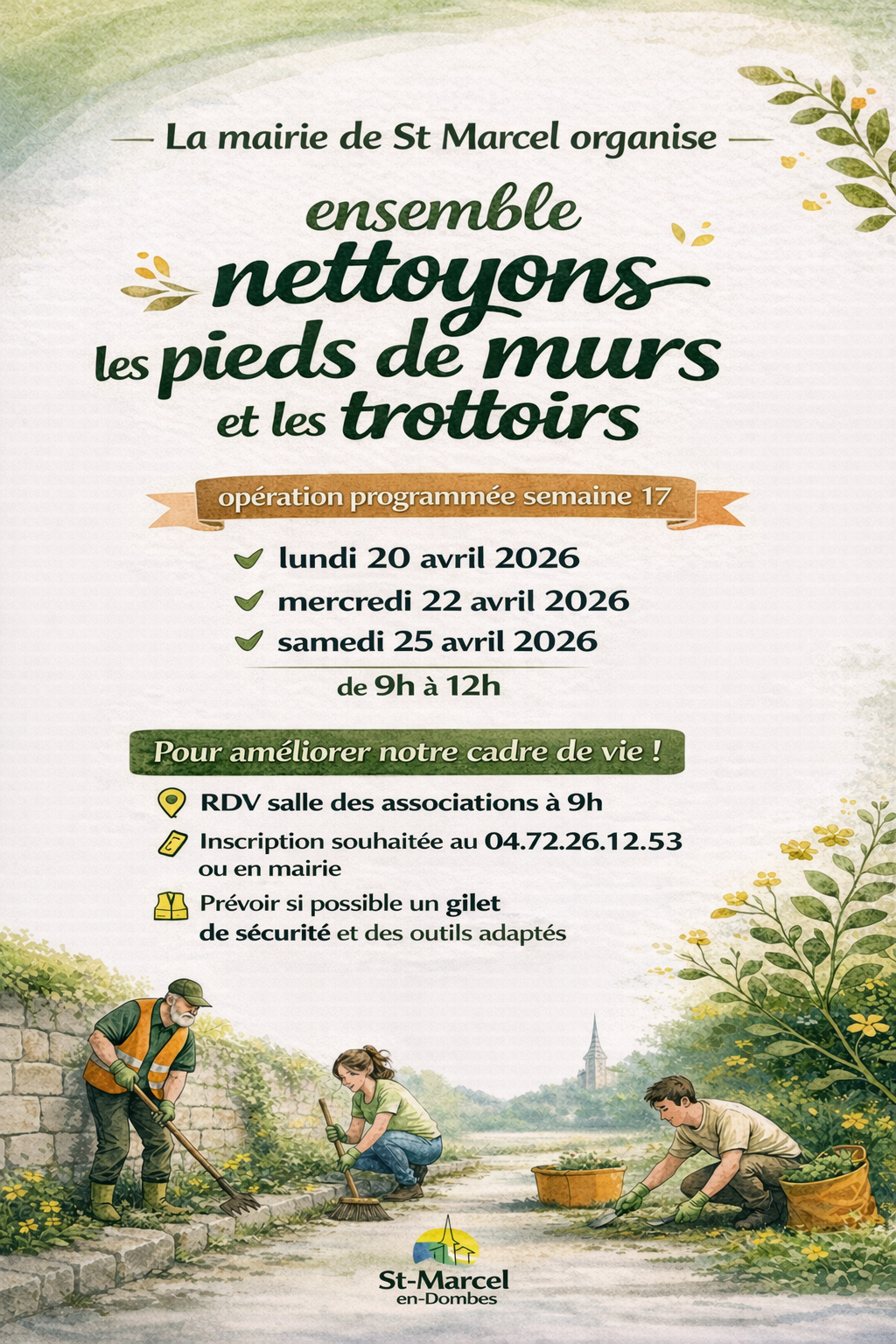📝 Inscriptions auprès de la mairie (74 route de Lyon) du lundi 12 janvier au vendredi 24 avril 2026