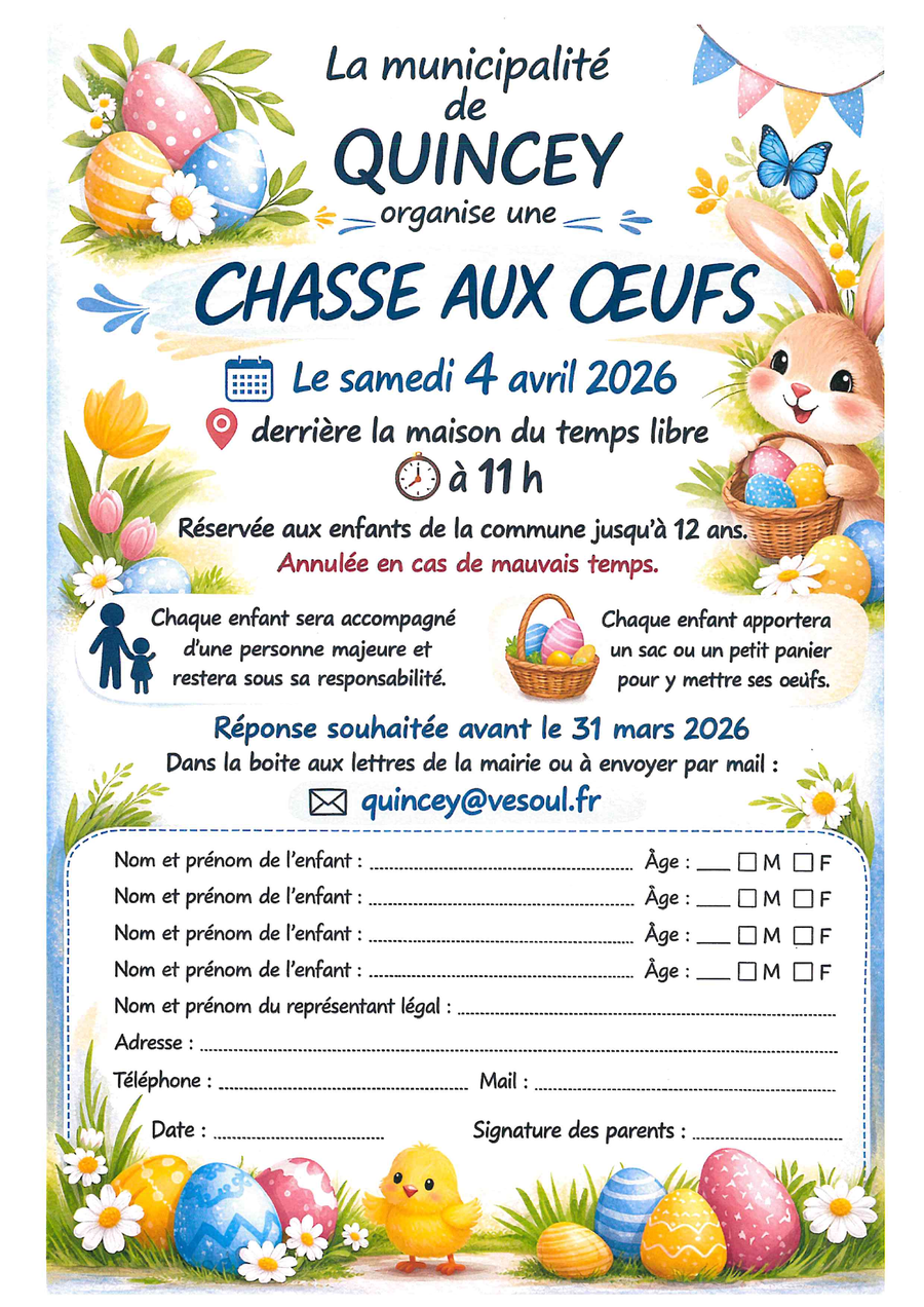 ▶ et 10 € pour les jeunes de Quincey de plus de 18 ans et aux jeunes extérieurs à la commune.