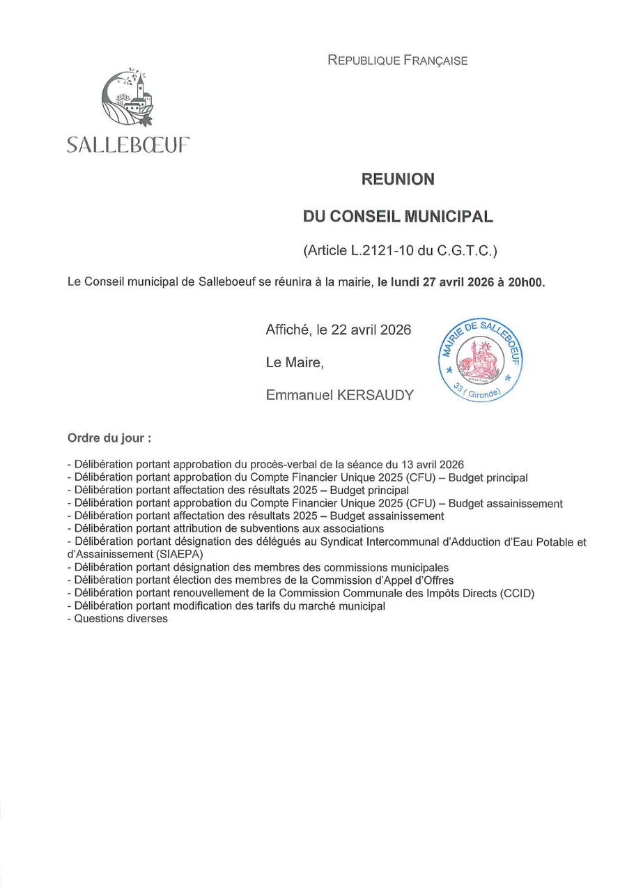 PROCHAIN CONSEIL MUNICIPAL