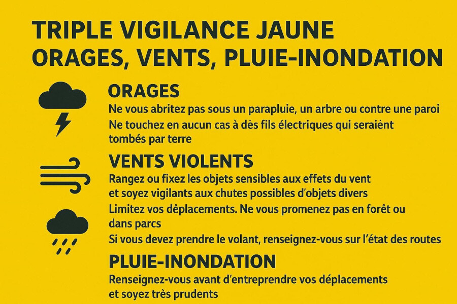 Météo-France place le département en vigilance jaune pour plusieurs phénomènes :
