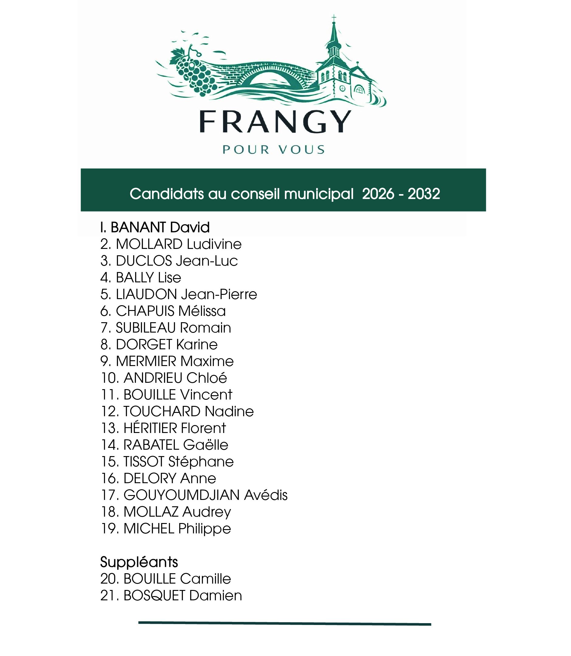 𝗗𝗮𝘃𝗶𝗱 𝗕𝗔𝗡𝗔𝗡𝗧, ancien Maire et tête de liste « Frangy pour Vous », a été élu Maire de la commune.