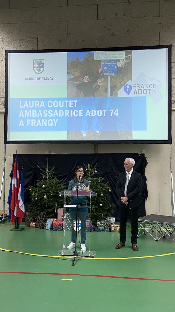 Après le mot de bienvenue de David Banant, Maire de Frangy, la parole a été donnée à Laura Coutet, jeune Frangypane et ambassadrice de l’association ADOT 74. A travers un témoignage empreint de clarté et de maturité, elle a rappelé avec force l’importance du don d’organes, marquant profondément l’assemblée.