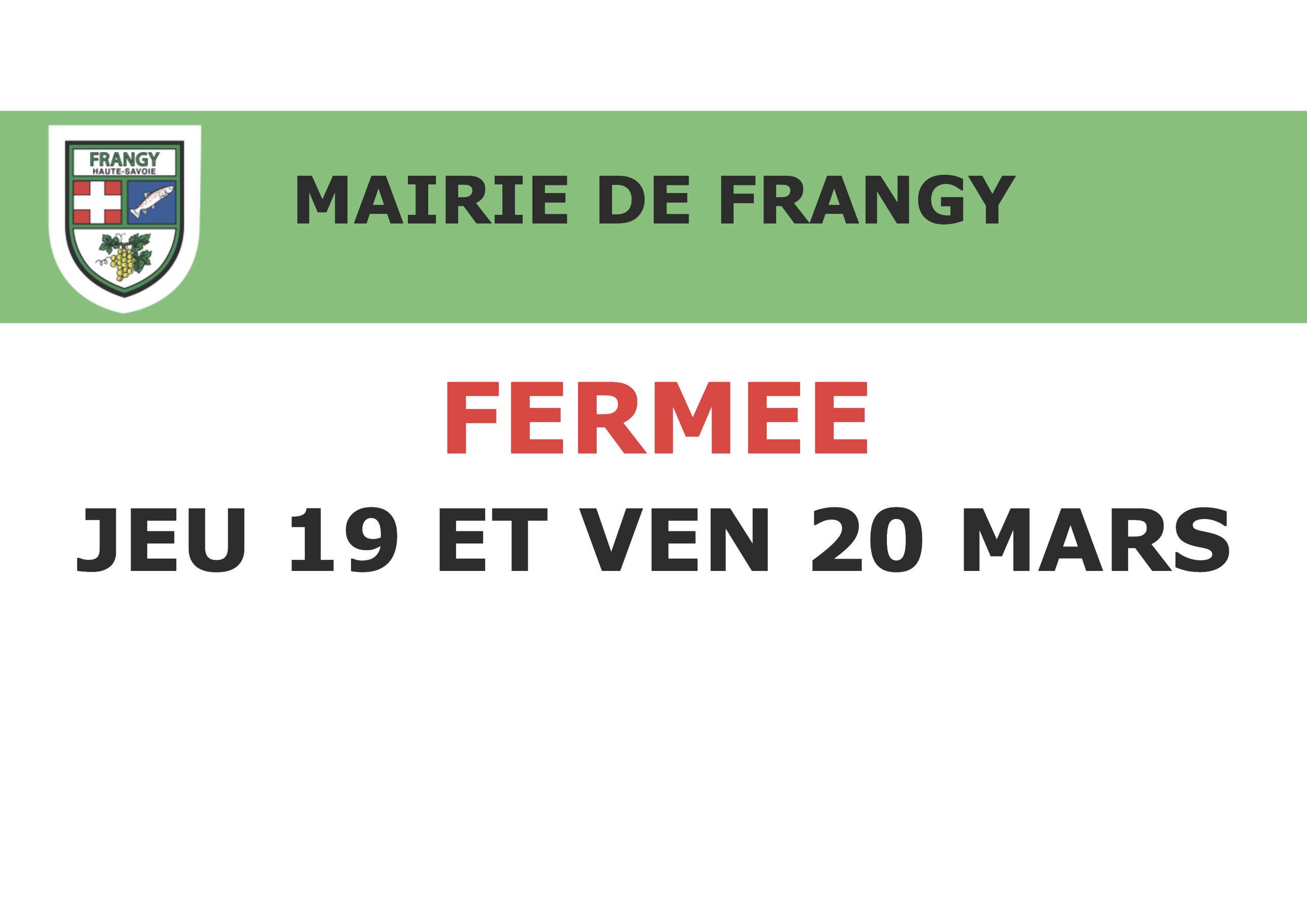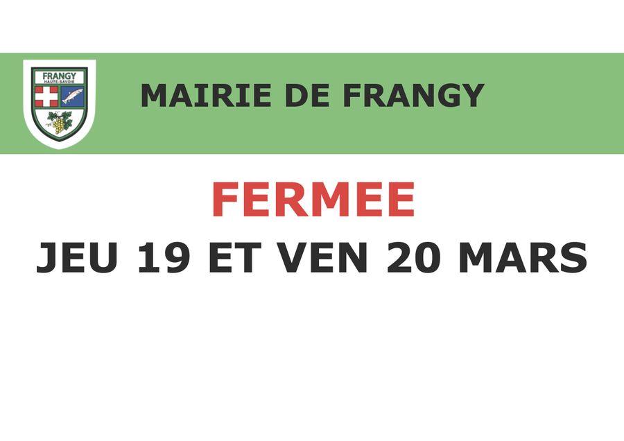 La Mairie de Frangy vous informe que les services d’accueil et titres sont fermés aujourd’hui mardi 17/03/2026.