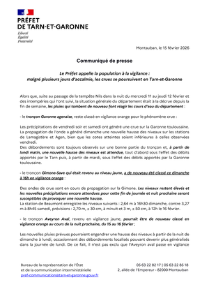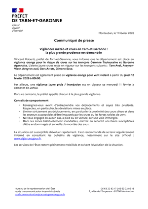 📍Point d'actualité du Préfet du Tarn-et-Garonne sur la situation suite au passage de la tempête Nils