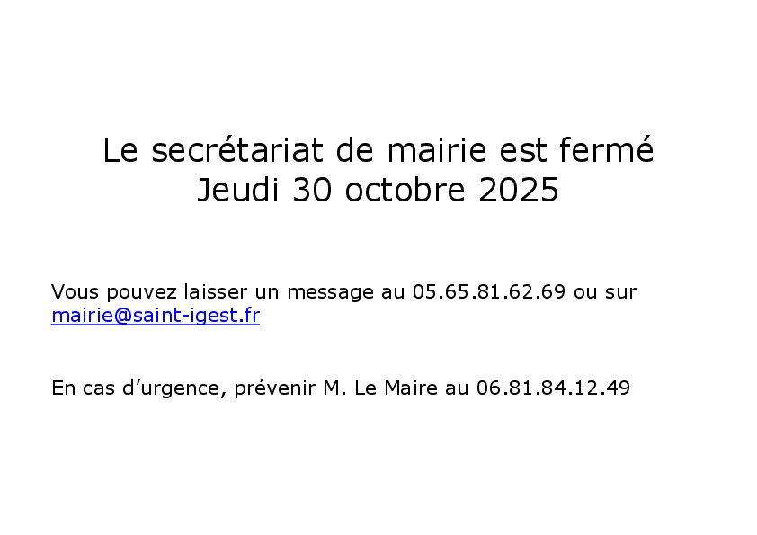 Nouveaux horaires d'ouverture du secrétariat de mairie à partir du 1er juillet 2024 :