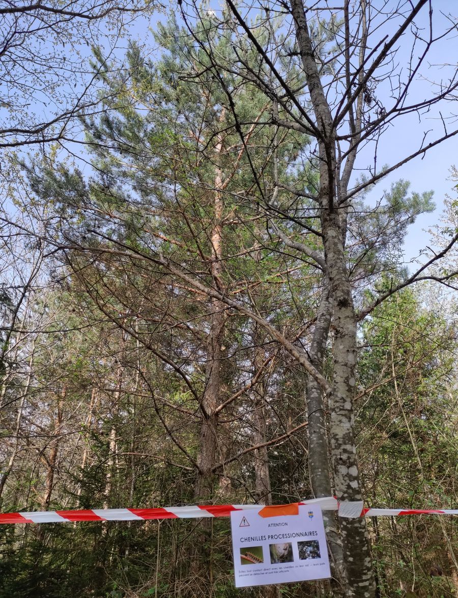 La présence de chenilles processionnaires a été constatée dans certains pins du parcours de santé.