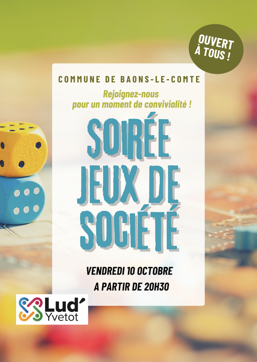 Soirée jeux de société animée par Lud'Yvetot, Vendredi 10 Octobre, à partir de 20H30.