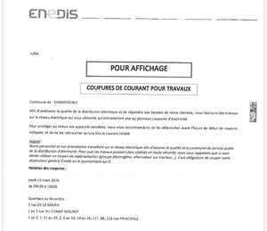 Une coupure de courant est prévue le JEUDI 19 MARS 2026 de 8h30 à 13h30 sur les secteurs suivants: