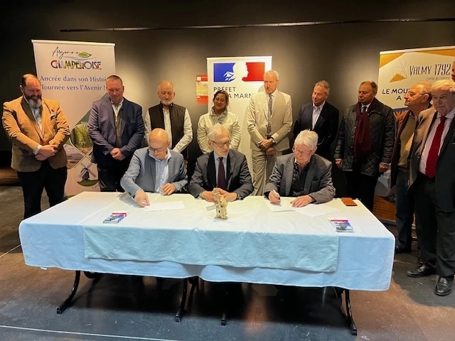C’est Bertrand Courot, Maire de Sainte-Ménehould et Président de la CCAC et Monsieur Jean-Louis Moineau, Délégué Départemental de la Fondation du Patrimoine qui ont procédé à cette signature.