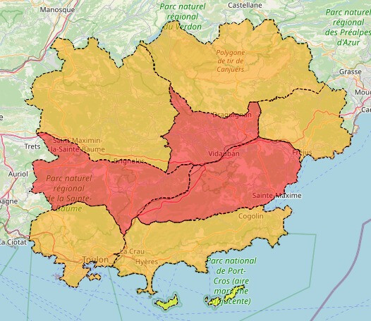 Accès déconseillé aux massifs des Monts Toulonnais, du Haut-Var, de la Corniche des Maures, du plateau de Canjuers et de l’Estérel.