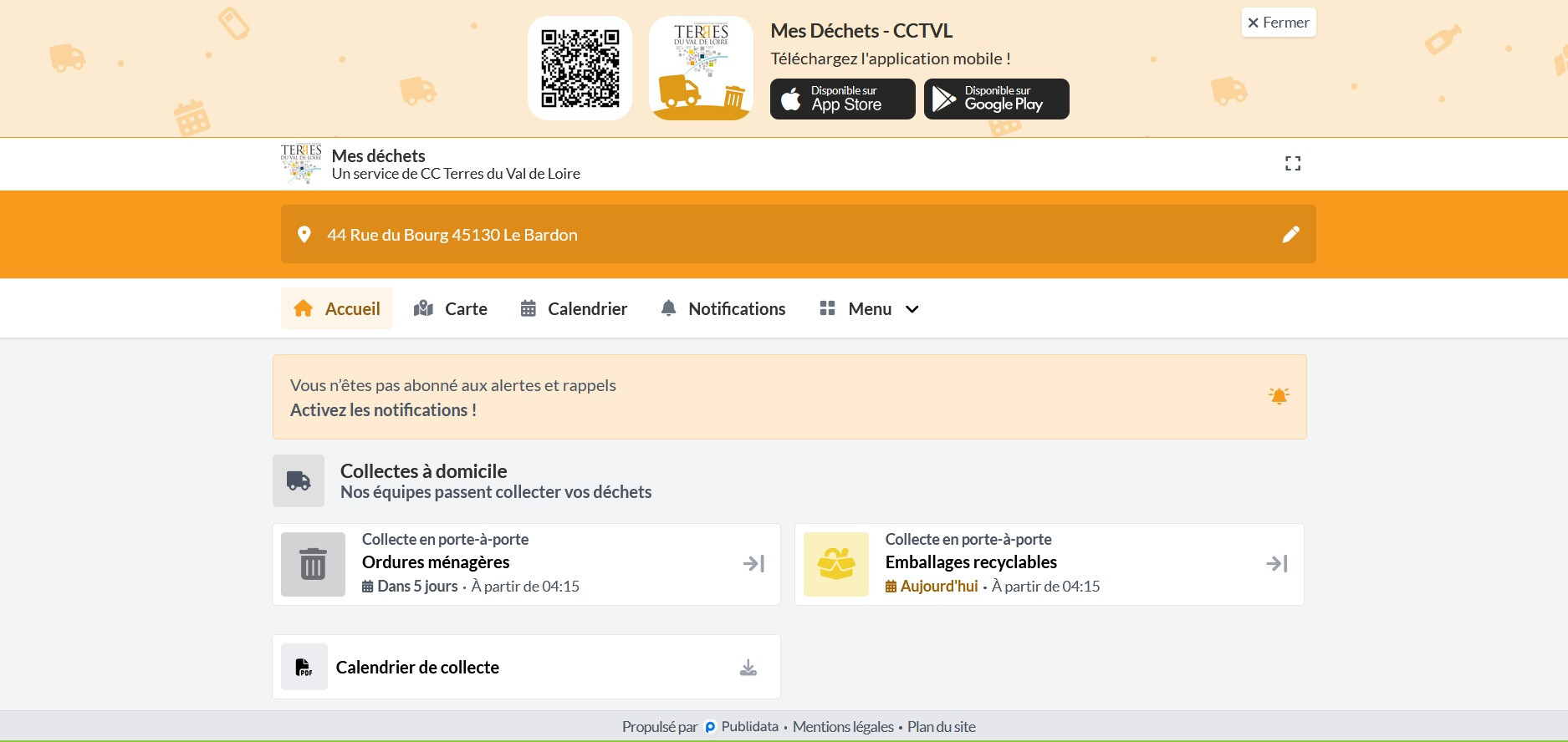 Le calendrier personnalisé des collectes de déchets