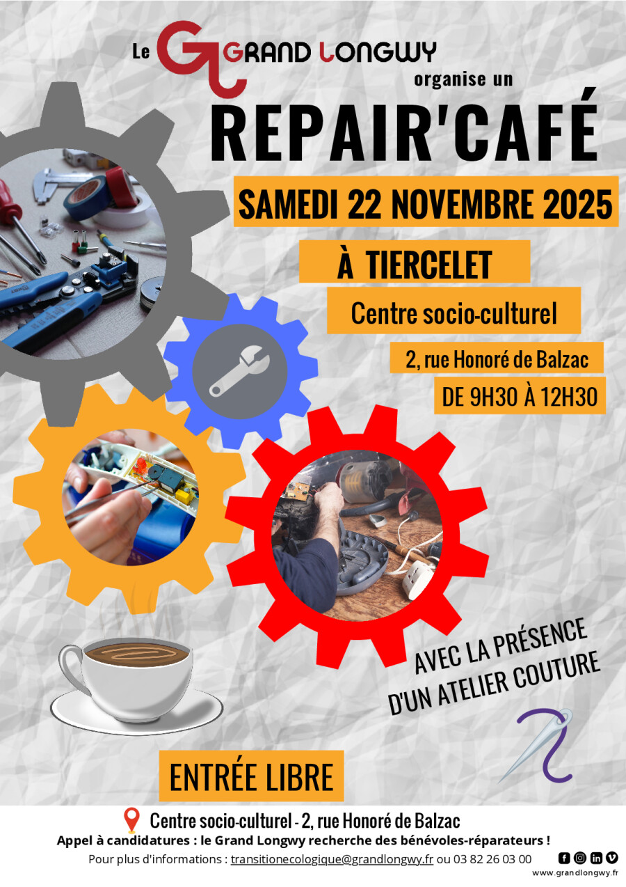 LâAgglomĂ©ration du Grand Longwy et la commune de Tiercelet ont le plaisir de vous inviter au prochain Repair CafĂ© !