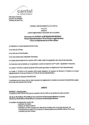 Communes de JOURSAC et NEUSSARGUES-MOISSAC Routes Départementales n°26 et 679 (hors agglomération)