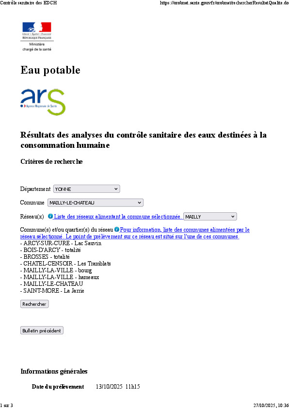- Mailly-la-Ville - Régie Eaux Puisaye Forterre - 89270