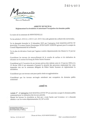 Le département de la Manche va procéder au renouvellement de la couche de surface de la RD 24 dans la traversée du bourg de Prétot