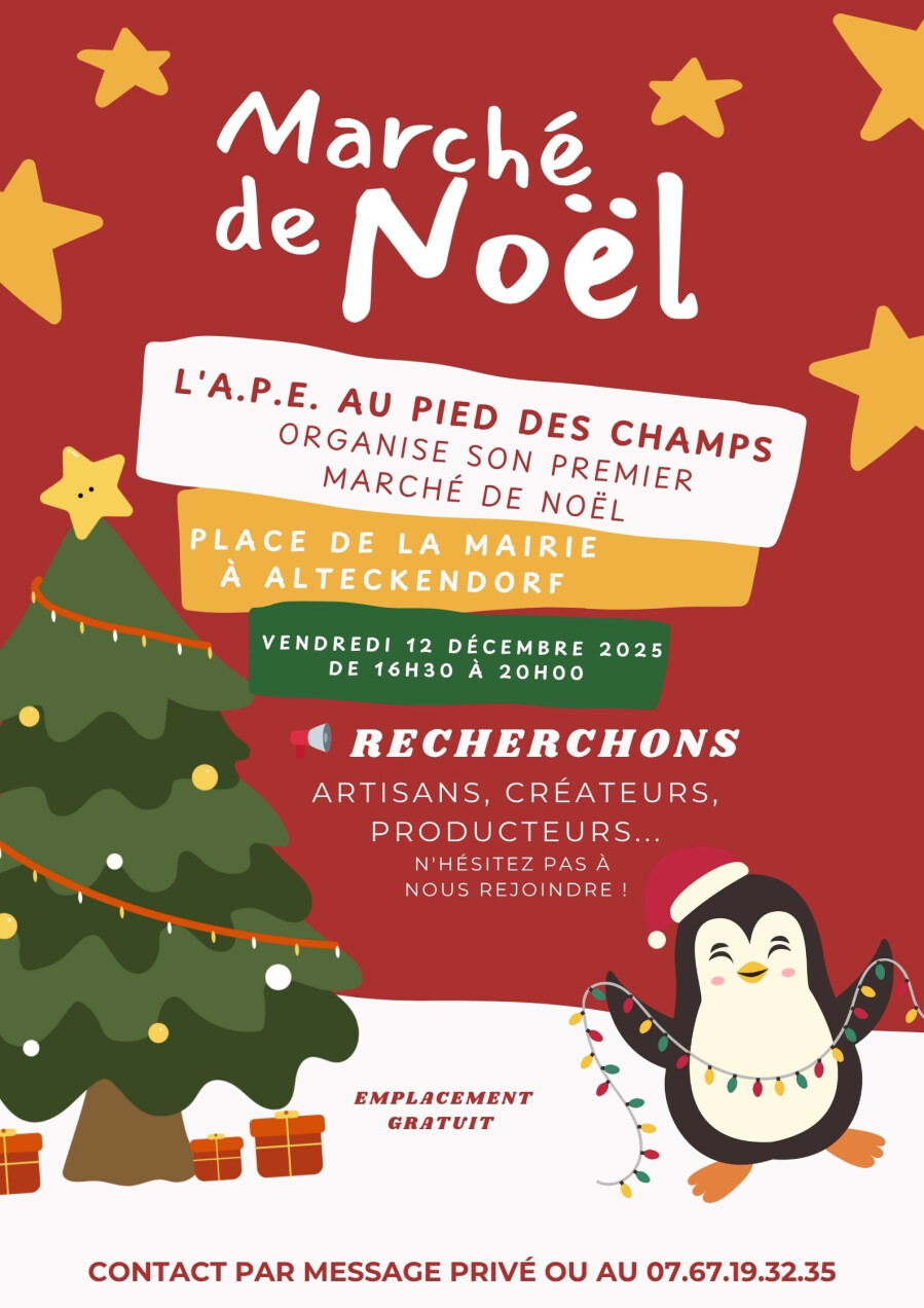 L'association des Parents d'élèves "Au Pied des champs" organise son 1er marché de Noël le