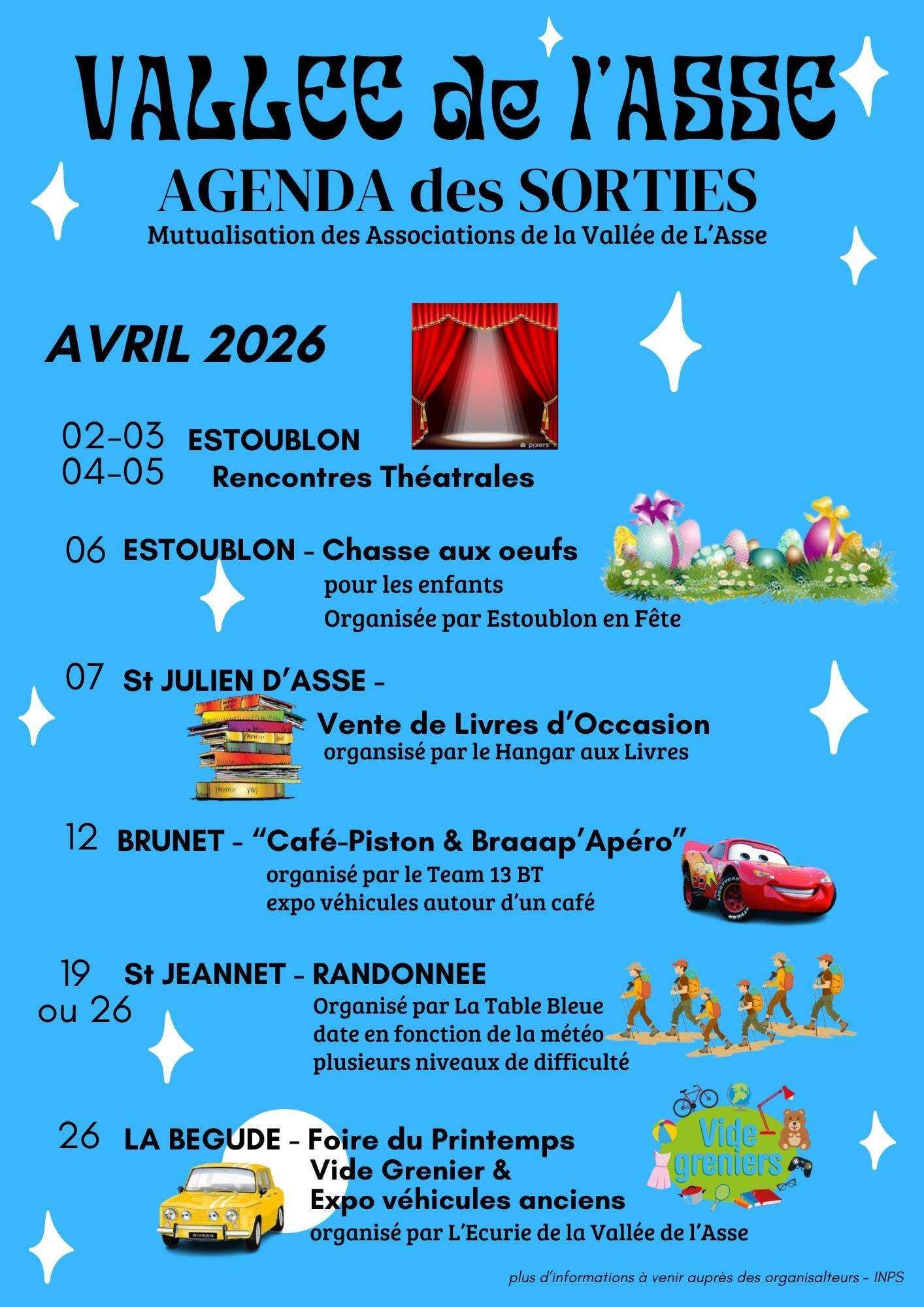 Vous trouverez sur ce panneau, toutes les sorties organisées par les associations de la Vallée de l'Asse pour le mois d’avril