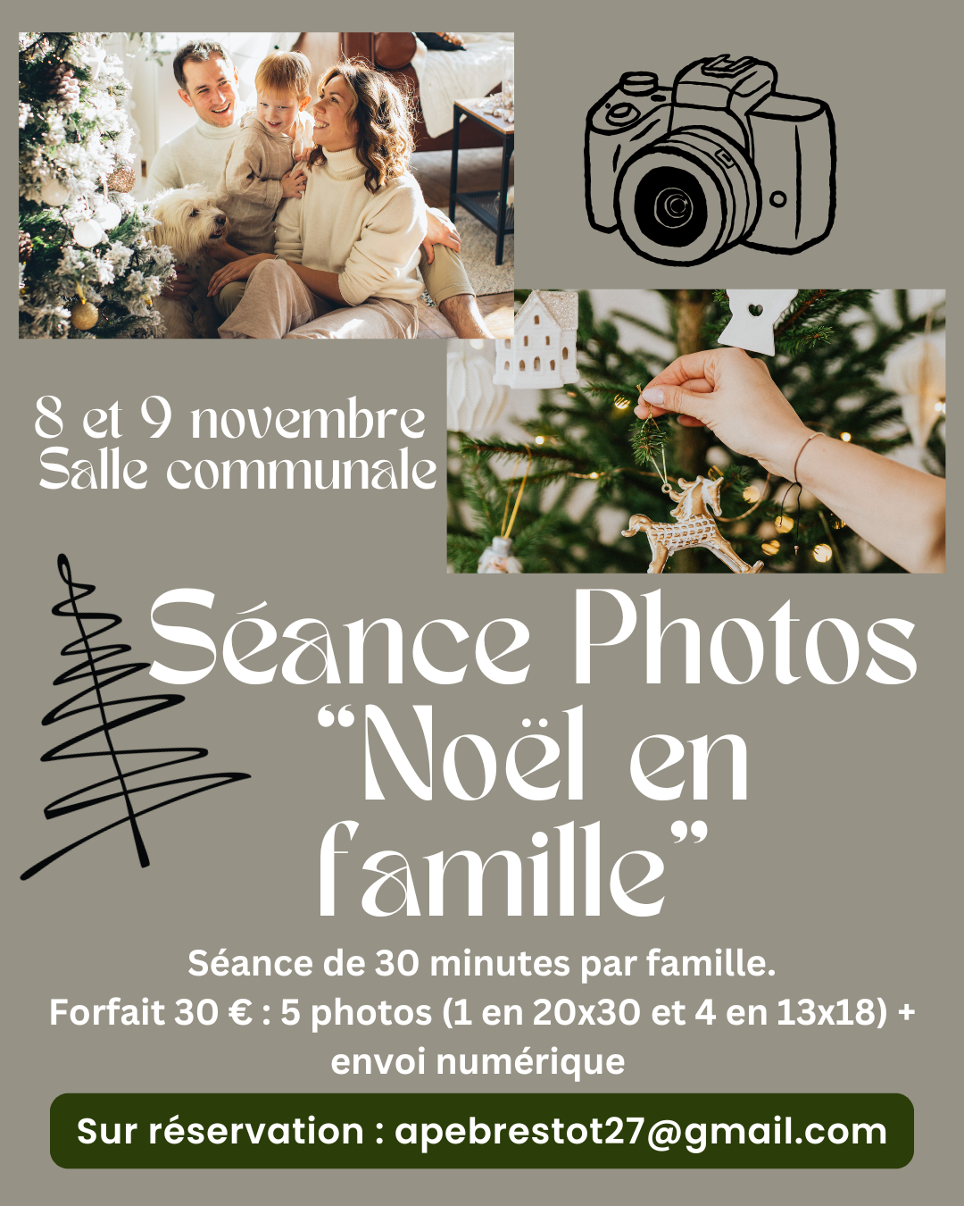 L'association des Parents d'Elèves de Brestot vous propose un week-end séance "Photos en Famille" sur le thème de Noël.