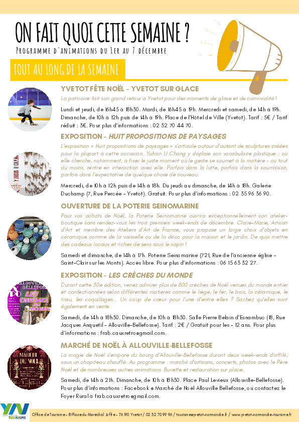 Départ 09h00 devant la communauté de communes Yvetot Normandie et retour pour 18h00.