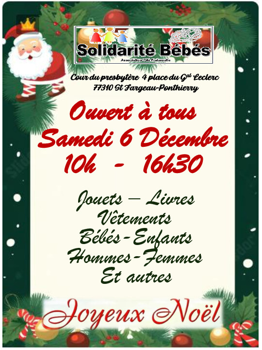 L’association SOLIDARITÉ-BÉBÉ vous accueille toute l’année les mercredis de 10h à 12h et de 14h00 à 16h30, sauf vacances scolaires.