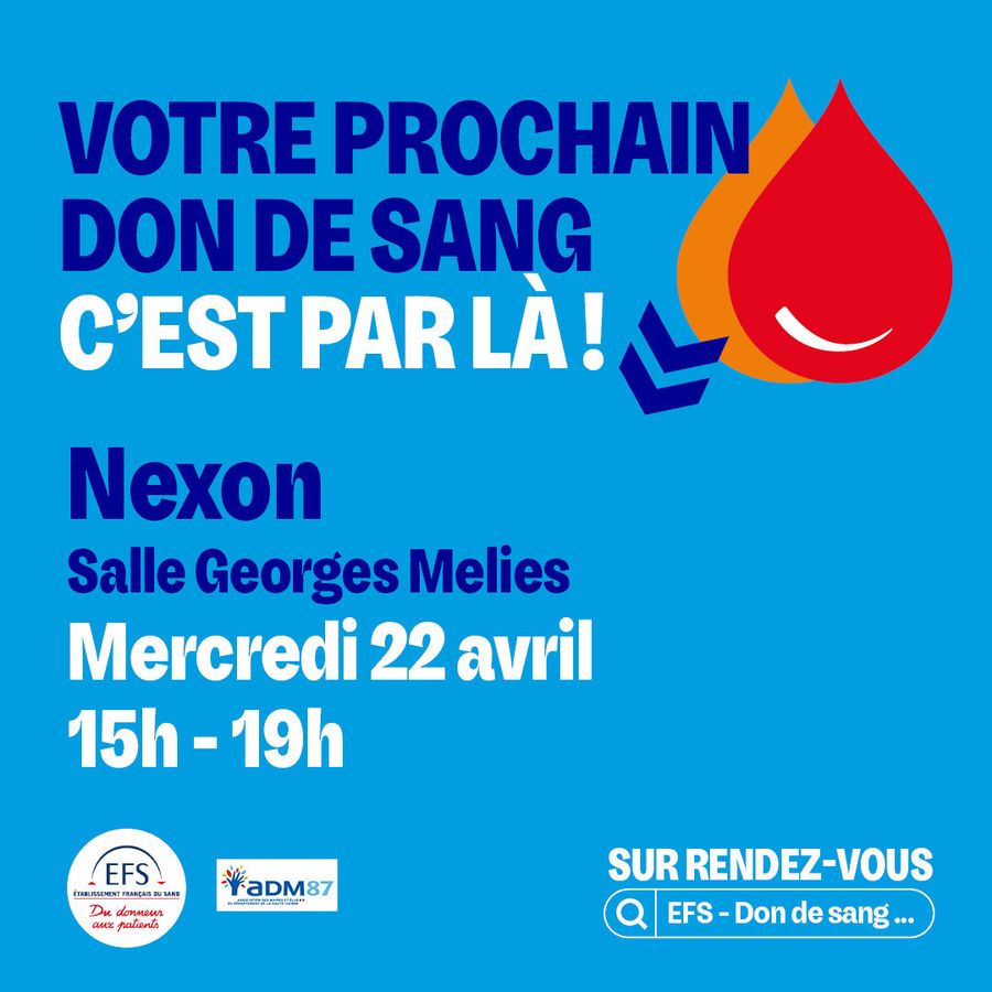 COLLECTE DE SANG le mercredi 22 avril 2026 de 15H à 19H