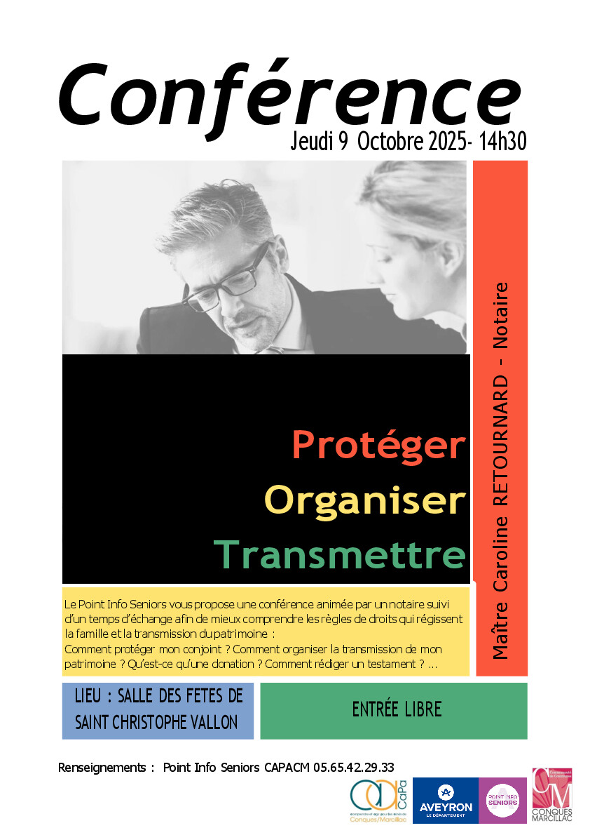 Afin d’y voir plus clair le Point Info Seniors Conques Marcillac avec le soutien de la communauté de communes et du Département de l’Aveyron vous propose une conférence animée par Maître Caroline RETOURNARD