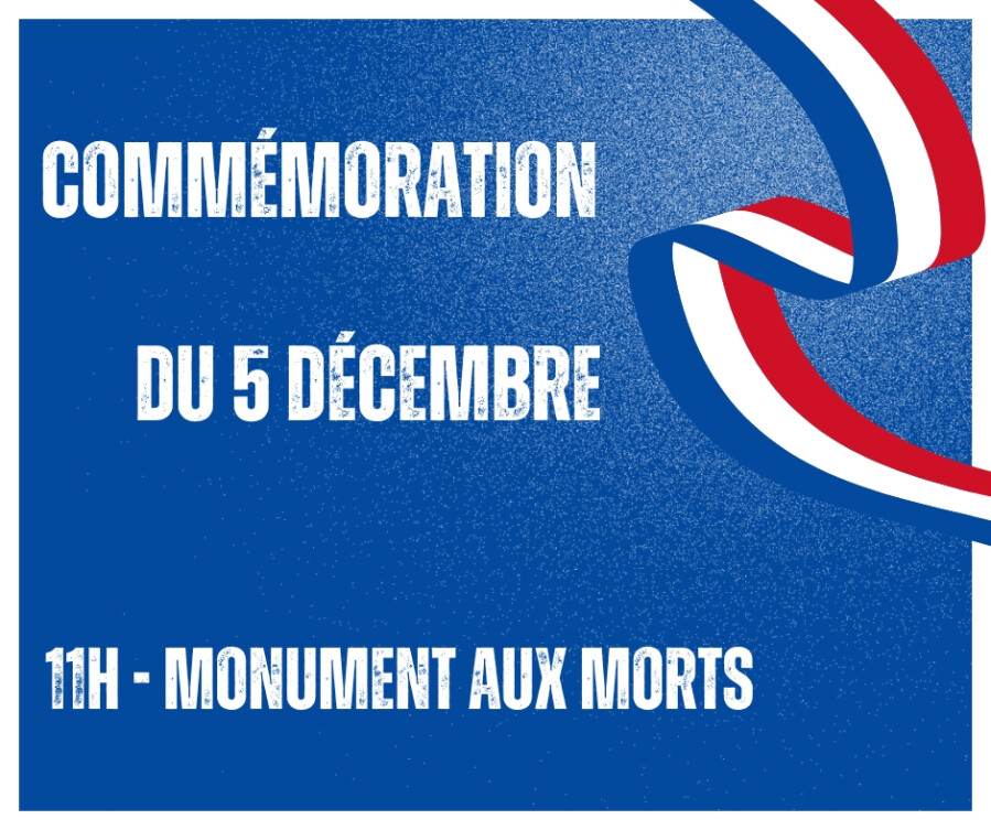 Le Maire, Anne-Marie BARDET et son Conseil Municipal vous invitent à prendre part à la cérémonie de recueillement et d'hommage aux victimes civiles et militaires de la guerre d’Algérie et des combats du Maroc et de Tunisie.