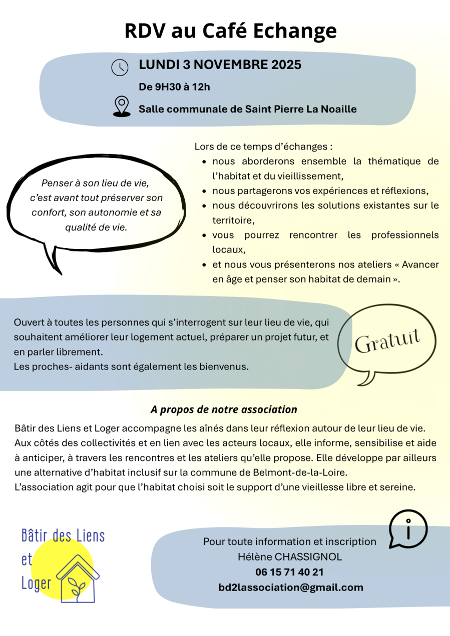 L’association Bâtir des Liens et Loger, en partenariat avec la commune de Saint Pierre La Noaille et le Centre de Ressources Territorial, organise un