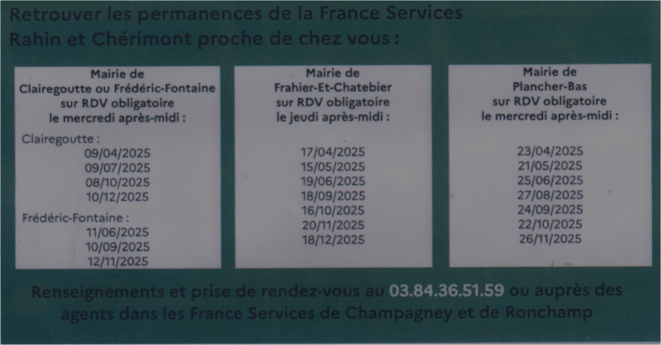 Renseignements et prise de rendez-vous (obligatoire) au 03.84.36.51.59.