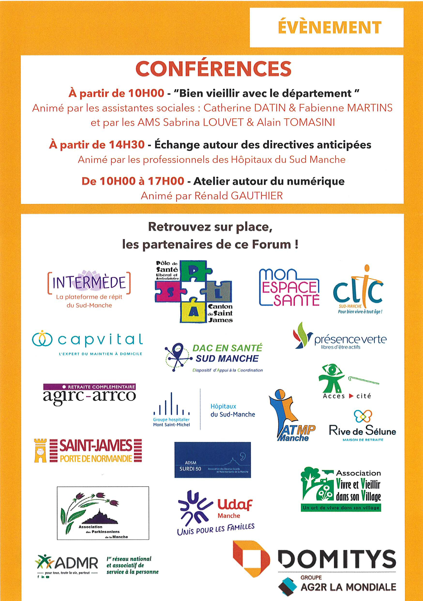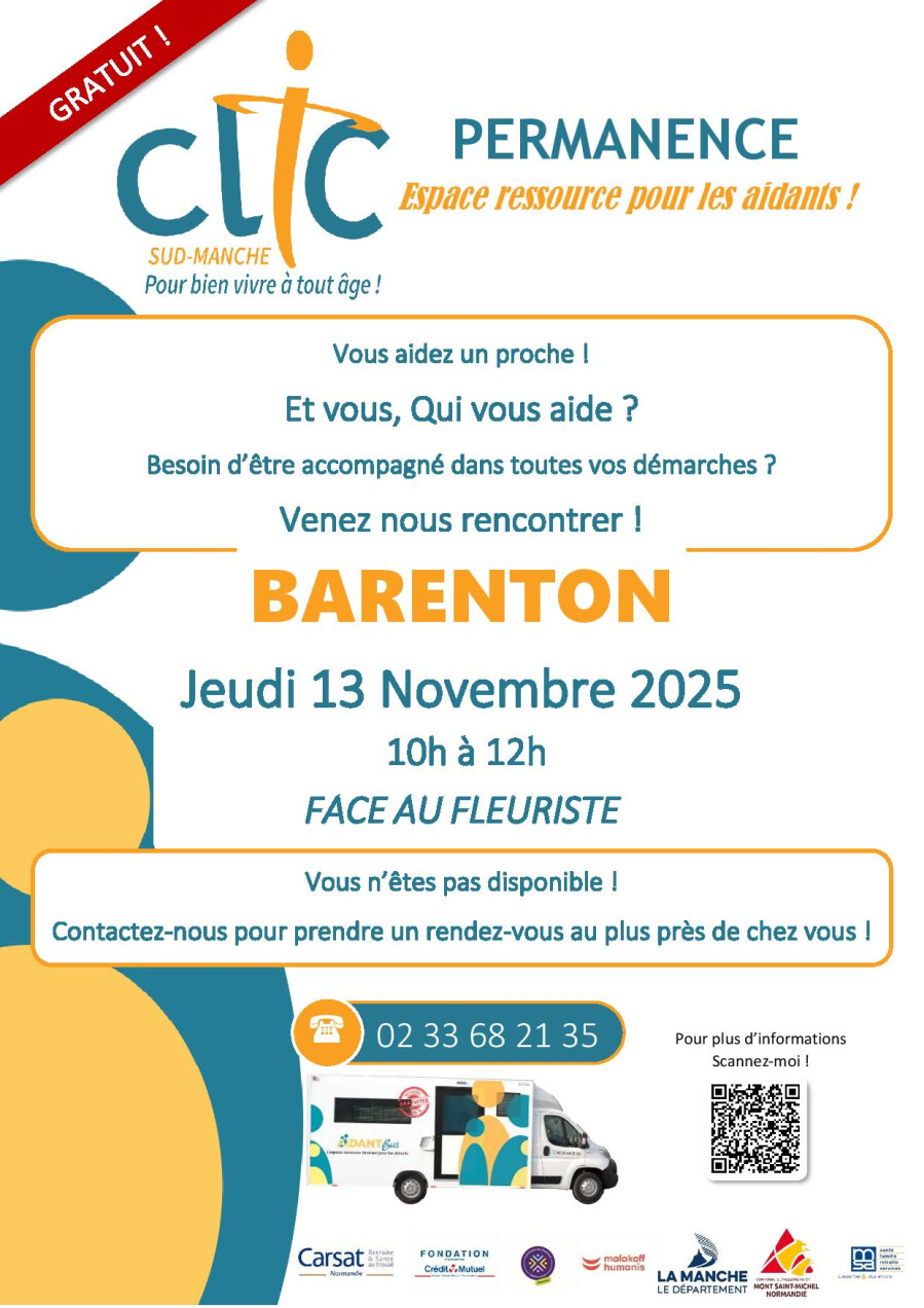 * Les lundis de 9H30 à 11H30 à Mortain (Pôle territorial du mortainais, hameau Velléda),