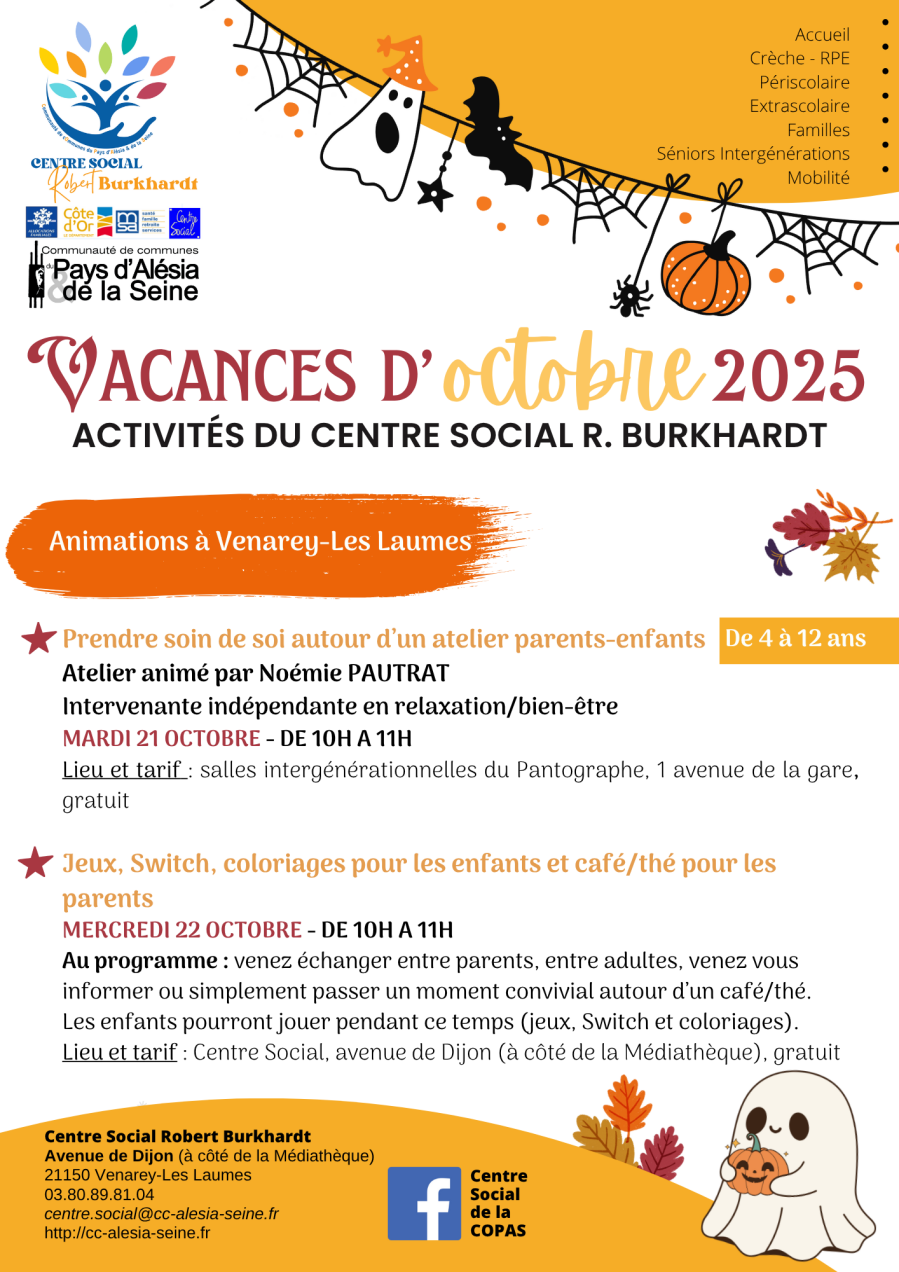 Découvrez ci-dessous le programme des vacances d'octobre au Centre social.