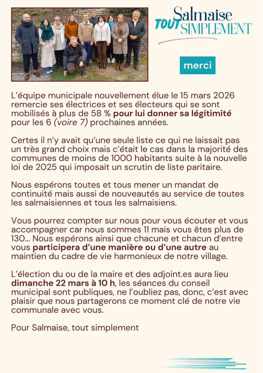 Nous vous informons que Dorine Pélissier, notre secrétaire de mairie, est en congés pour maternité à compter