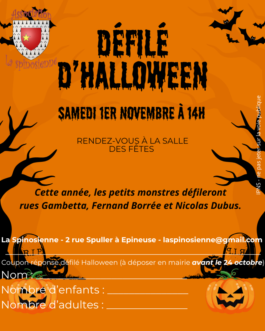 L'association la Spinosienne vous propose de participer au défilé d'halloween le samedi 1er novembre.