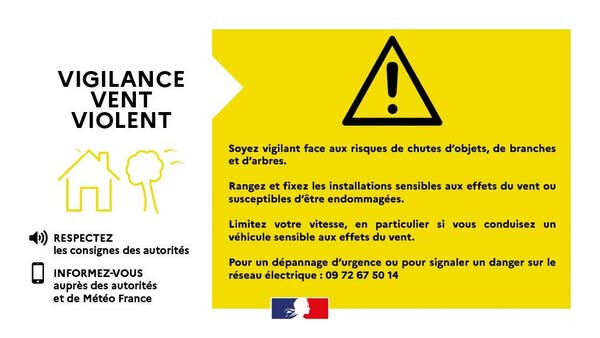 Soyez vigilants face au risque de chutes d’objets, de branches ou d’arbres.