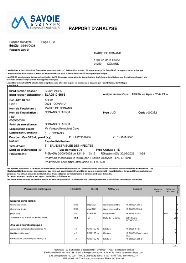 En raison d’une nouvelle défaillance du système de chloration automatique, les résultats des derniers tests effectués au réservoir de CHARIOT se sont révélés non conformes.
