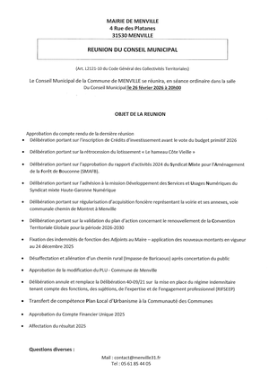 Les déclarations doivent être déposées à l’accueil de la mairie aux heures habituelles d’ouverture au public, ou par mail : contact@menville31.fr.
