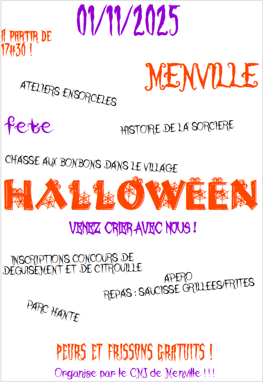 MERCI AUSSI, SI VOUS HABITEZ LE CENTRE BOURG, D'INDIQUER PAR UNE DECORATION SUR LE DEVANT DE VOTRE MAISON QUE VOUS ÊTES D'ACCORD POUR OFFRIR DES BONBONS A TOUS LES PETITS MONSTRES, SORCIERS, SORCIERES ET AUTRES FANTÔMES...