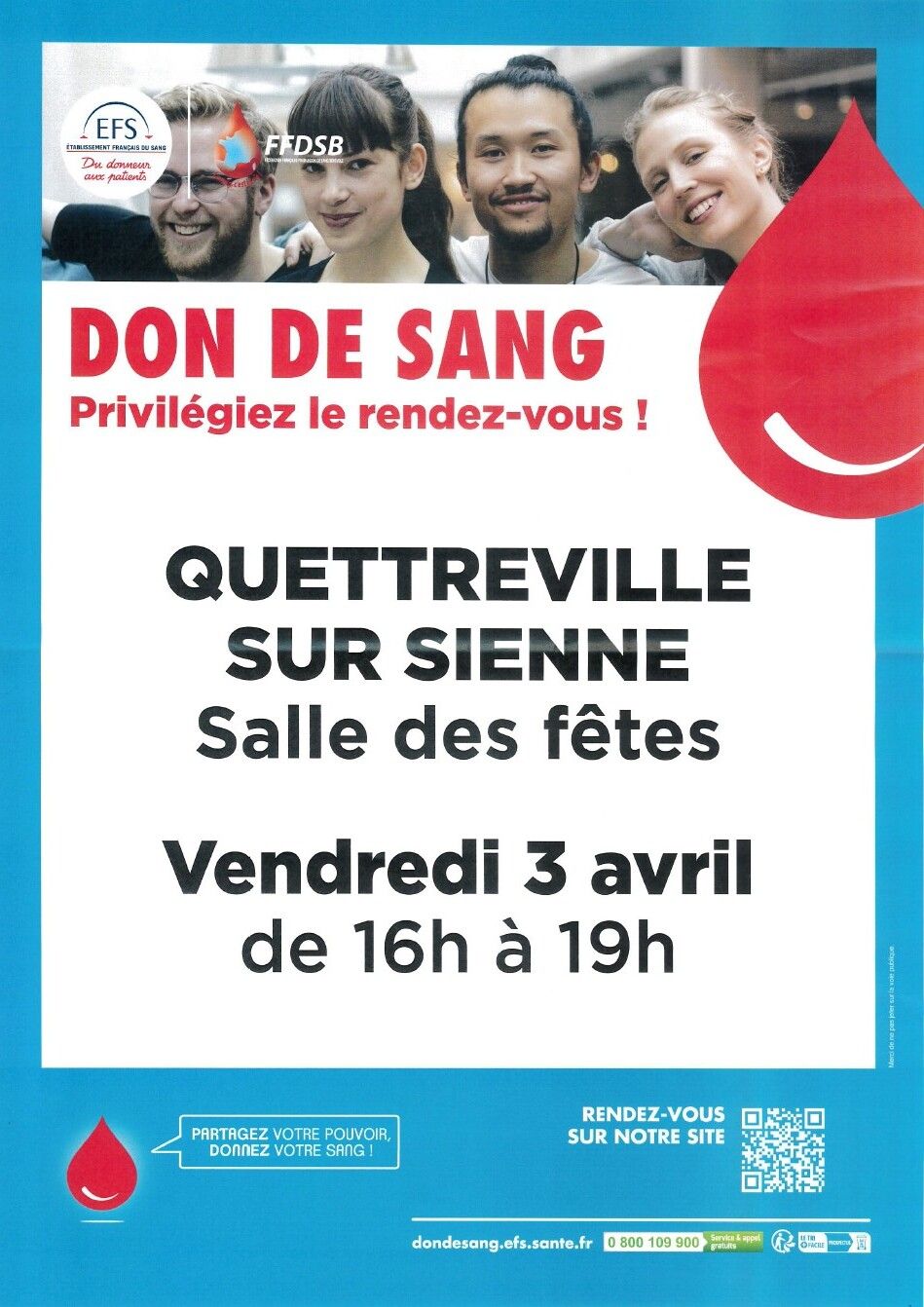 Une collecte de sang est organisée à la salle des fêtes de Quettreville-sur-Sienne :