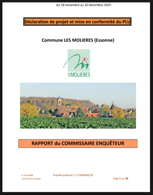 Le rapport et les conclusions du commissaire enquêteur relatifs à l’enquête publique portant sur la déclaration de projet emportant mise en compatibilité du Plan Local d’Urbanisme de la commune des Molières sont disponibles dans ce dossier en ligne (cliquer ici) et consultables en mairie aux heures habituelles d’ouverture, pour une durée d’un an.
