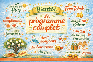>> En donnant votre numéro de téléphone et votre mail, vous recevrez toutes les informations pendant la préparation à partir du 15 février 2026 et chaque jour, pendant la semaine du 15 au 21 mars, des conseils et des challenges, de petites actions à mener si vous en avez envie ainsi que le détail du programme de la journée. Inscrivez-vous ici