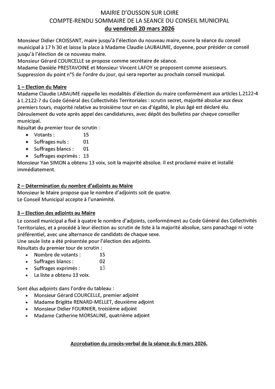 L'Agence Postale Communale d'Ousson sur Loire sera fermée le vendredi 3 et samedi 4 avril.