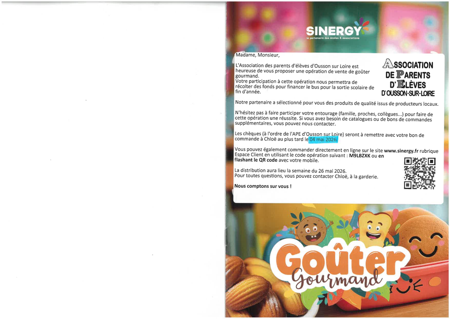 L’Association des Parents d’Élèves d’Ousson-sur-Loire vous propose une vente de goûters gourmands, pour petits et grands.